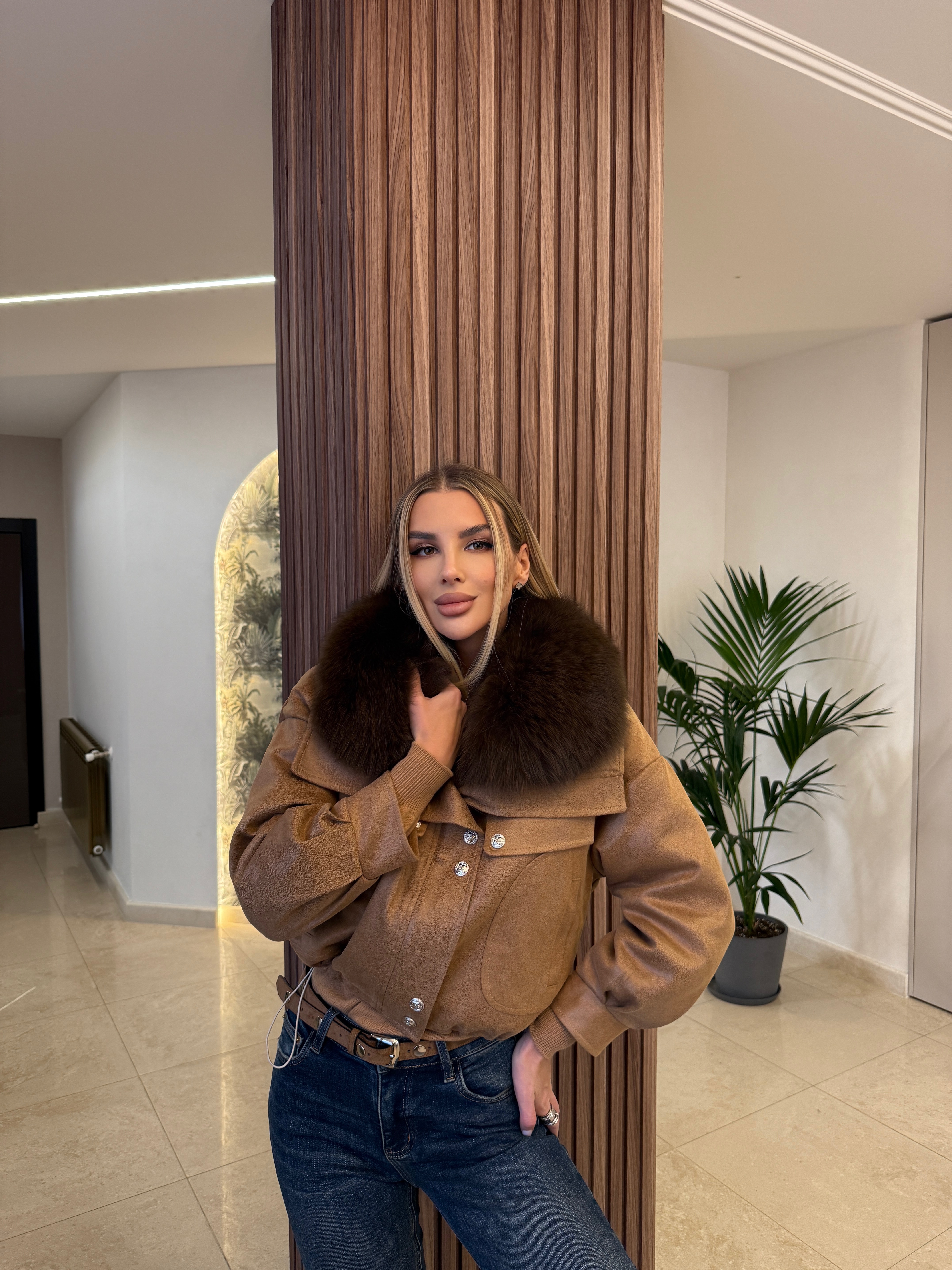 Това палто е изработено от качествени материи, предлагащи комфорт и топлина. Пухкавата яка добавя стил и уют, а модерен дизайн подчертава силуета. Палто е перфектен избор за всяка зимна визия, подходящо за ежедневно носене или специални поводи.